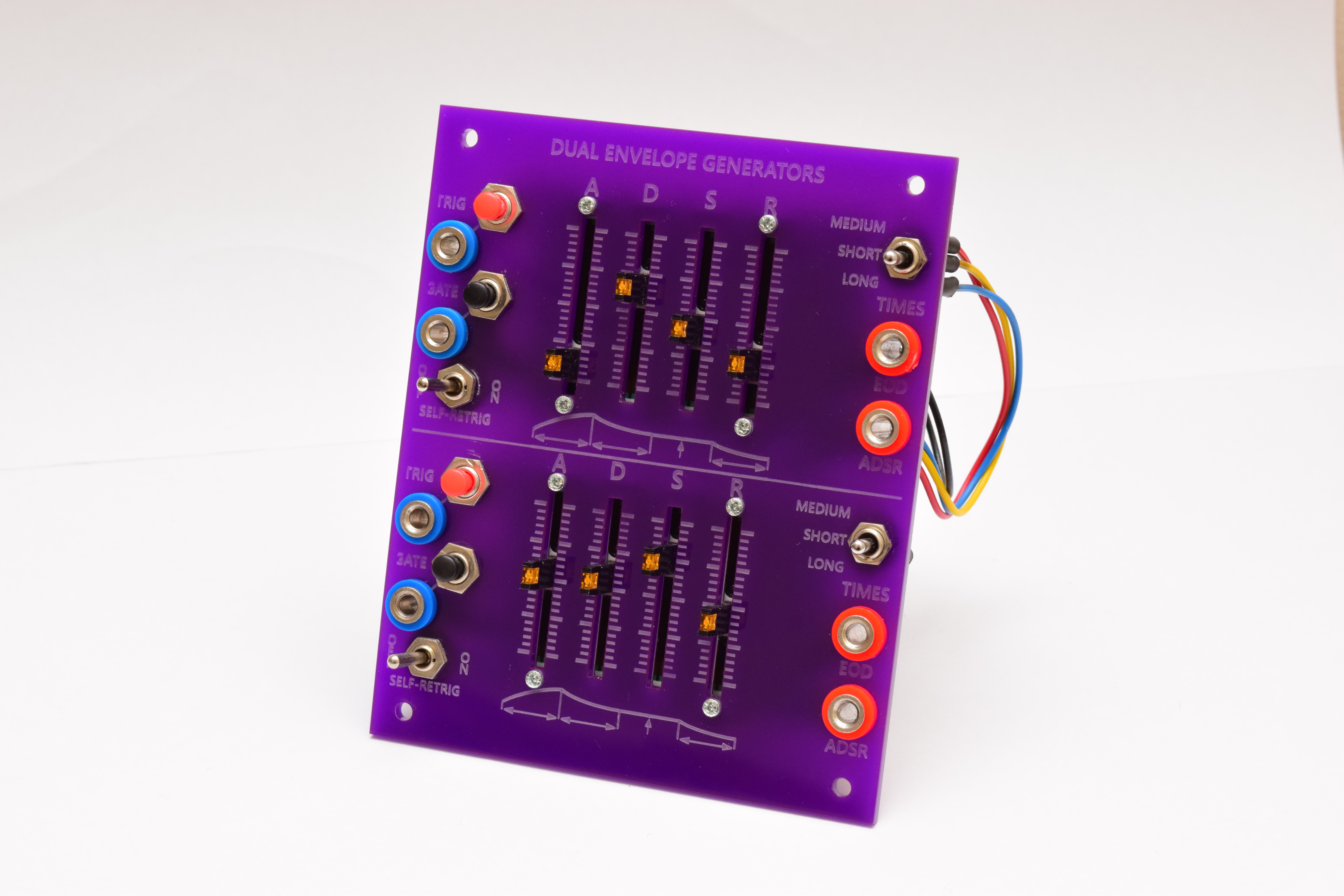 This module is used to generate a contour control voltage in a synthesiser. It’s what helps make a sound snappy, or makes it smoothly fade in and out. It can be used in combination with a lot of components, but that is the general idea.