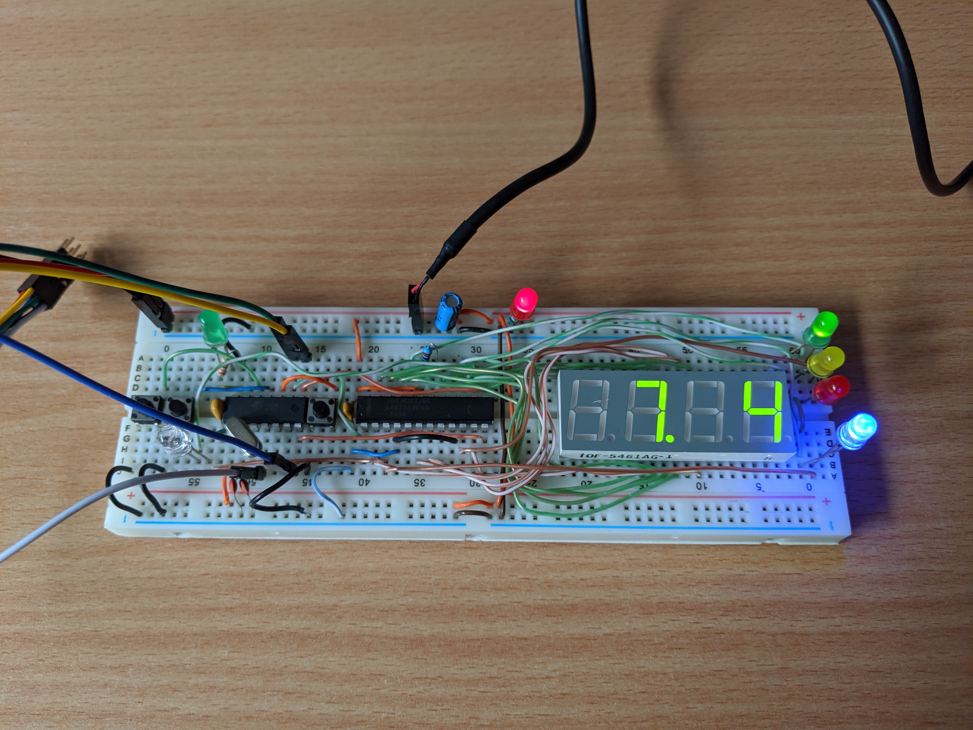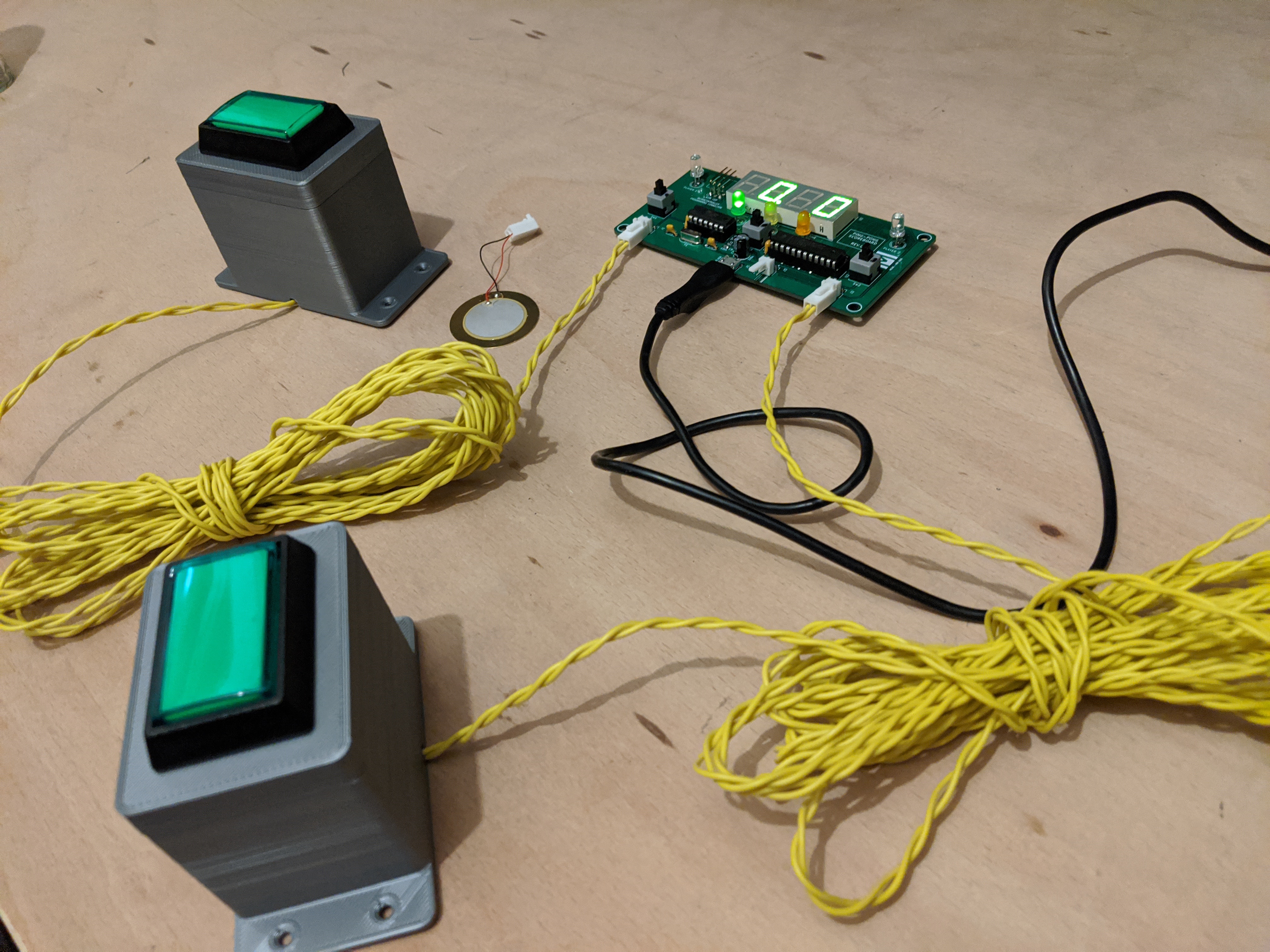 When I made this, I felt quite well-versed in everything needed to build it, so it was a relaxing project to work on. The only thing particularly new to me was driving a piezo speaker. The speaker was a pretty late addition, added only because there was some left-over program memory on the microcontroller, and I felt a happy jingle would really rub it in for the loser. ;-)