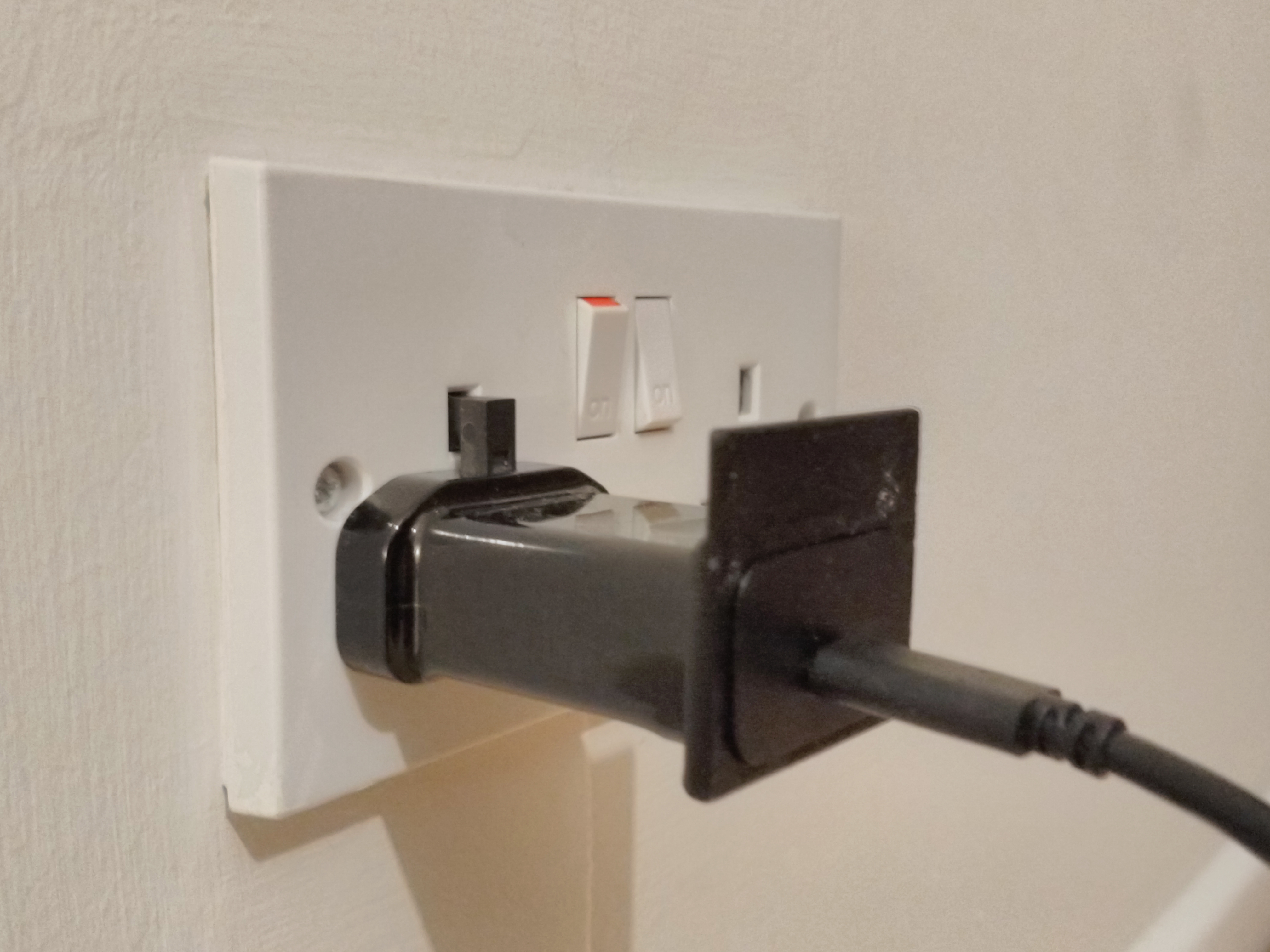 I like being able to leave my phone with the charger plugged into the wall socket, without laying it on the floor. A small addition that fits tightly around the charger provides a ridge the phone can sit against, while leaning against the wall.