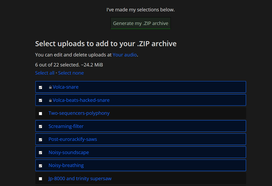A favourite among many was the “Random audio” feature, which redirected you to a random (public) audio upload. A fun way to discover some cool things, but also a gateway to the plentiful weird stuff and jokes people put up.